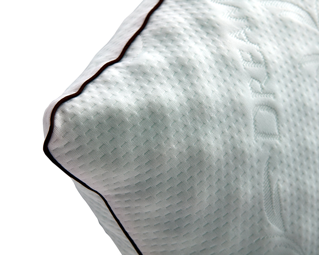 Almohada de Apoyo suave con tecnología viscofoam, es un poliuretano con memoria que reduce la presión de tu cuerpo de manera uniforme, permitiéndole un descanso reparador, se adapta perfectamente a la forma de tu cuerpo Elaborada en poliuretano flexibles de alta densidad y láminas de viscofoam, perfiladas que brindan una sensación agradable de masaje. Termosensible, hipoalergénica y ergonómica.