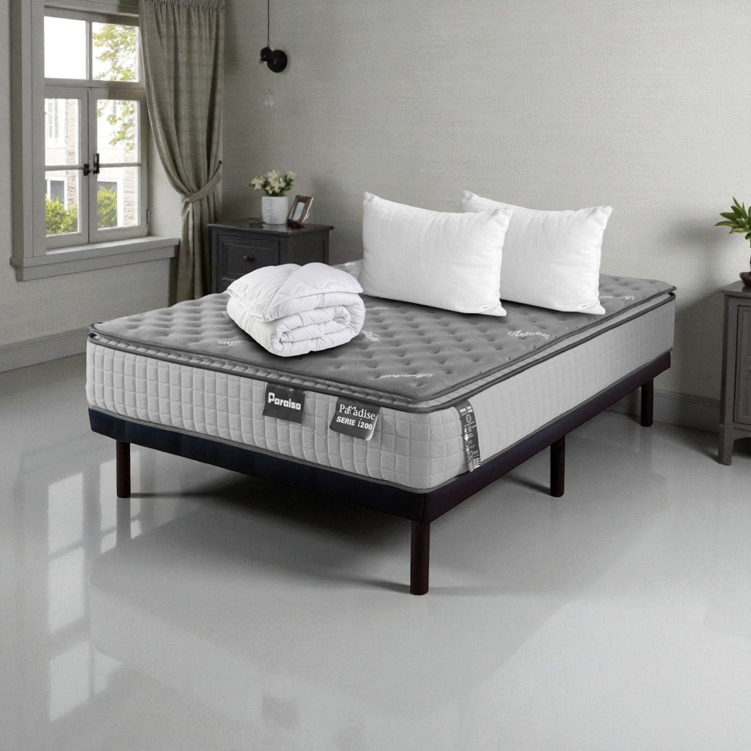 Super Oferta Combo Colchón Paradise Serie i200 + Protector Acolchado + Almohadas